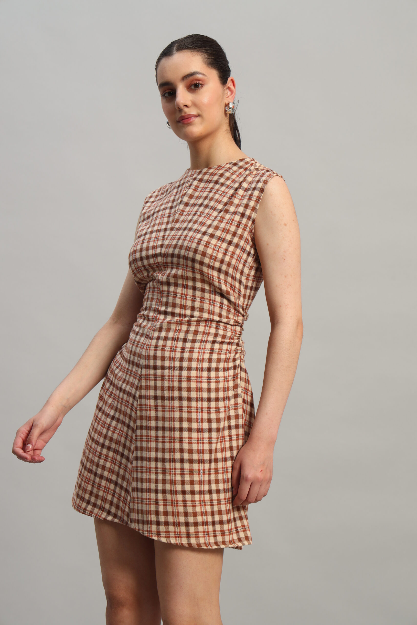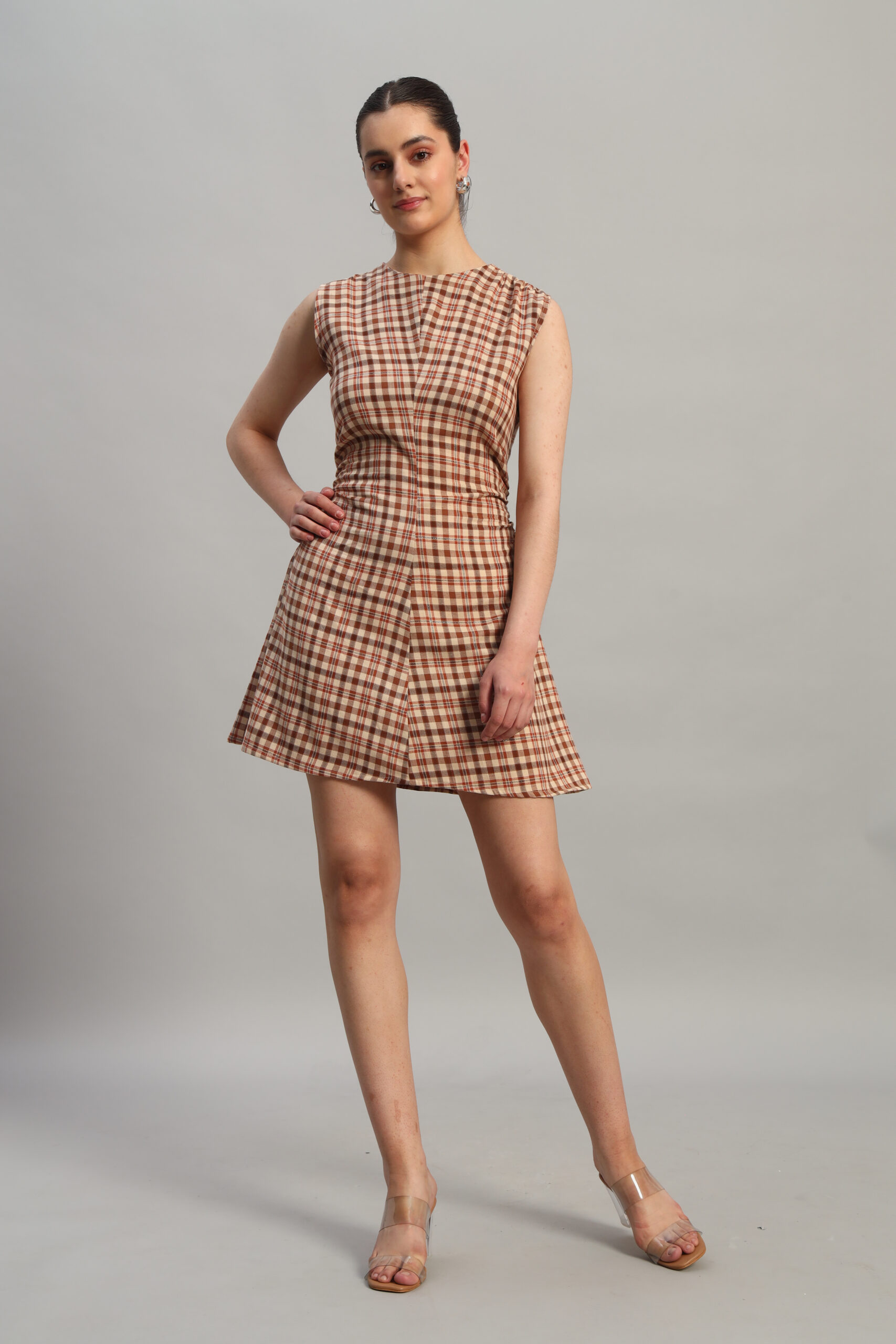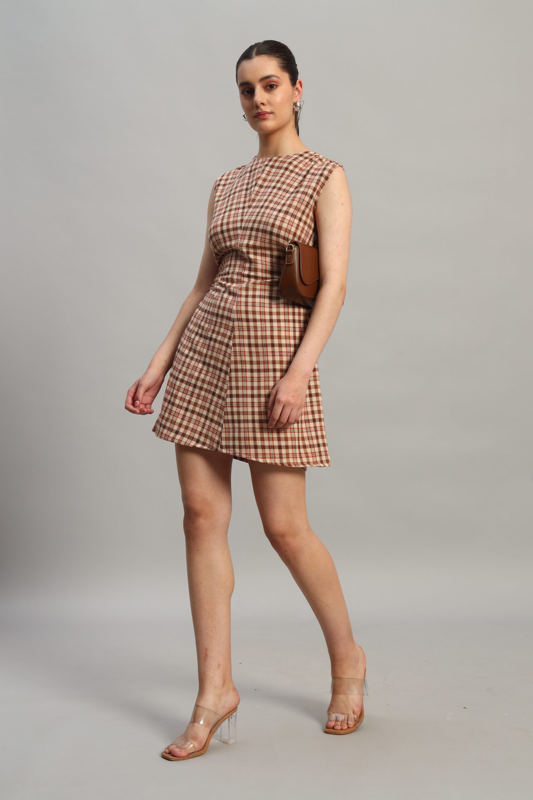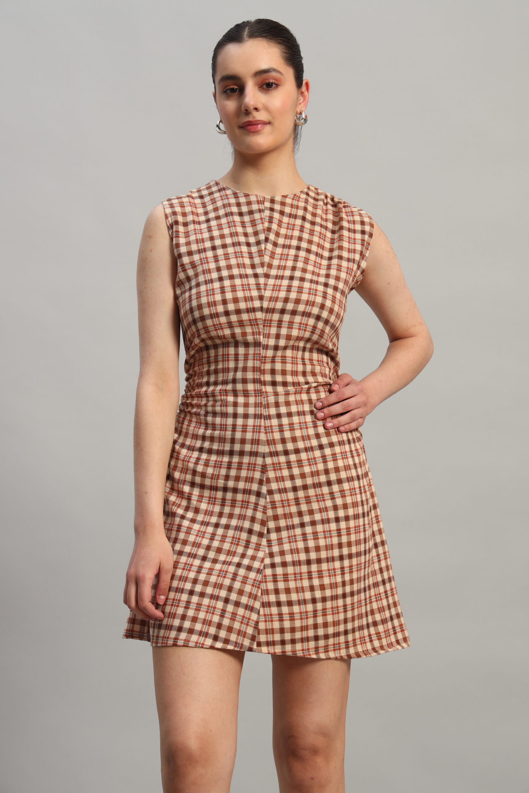 Step into timeless style with Arty Chic’s checked mini dress! Designed for a chic and modern vibe, this dress features a classic check pattern in warm tones, perfectly tailored to flatter with its structured fit and subtle gathers at the waist. Whether you’re heading out for a casual brunch or dressing up for a night out, this versatile Arty Chic’s piece transitions effortlessly from day to evening.