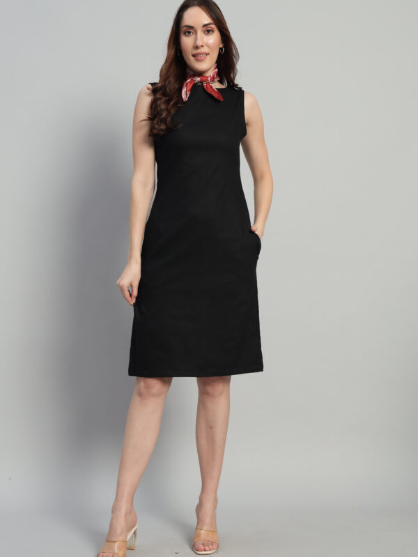 ₹2,399.00Arty Chic Black Sleeveless Dress – Effortless Elegance & Timeless Charm