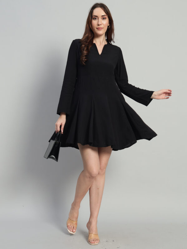 ₹1,999.00Step into effortless sophistication with Arty Chic’s Black Godet Dress, designed to make a lasting impression. Featuring godet panels that create a flowy, flared silhouette, this dress moves gracefully with every step. The flattering V-neckline and elegant bell sleeves add a touch of refinement, making it the perfect blend of chic and timeless style.